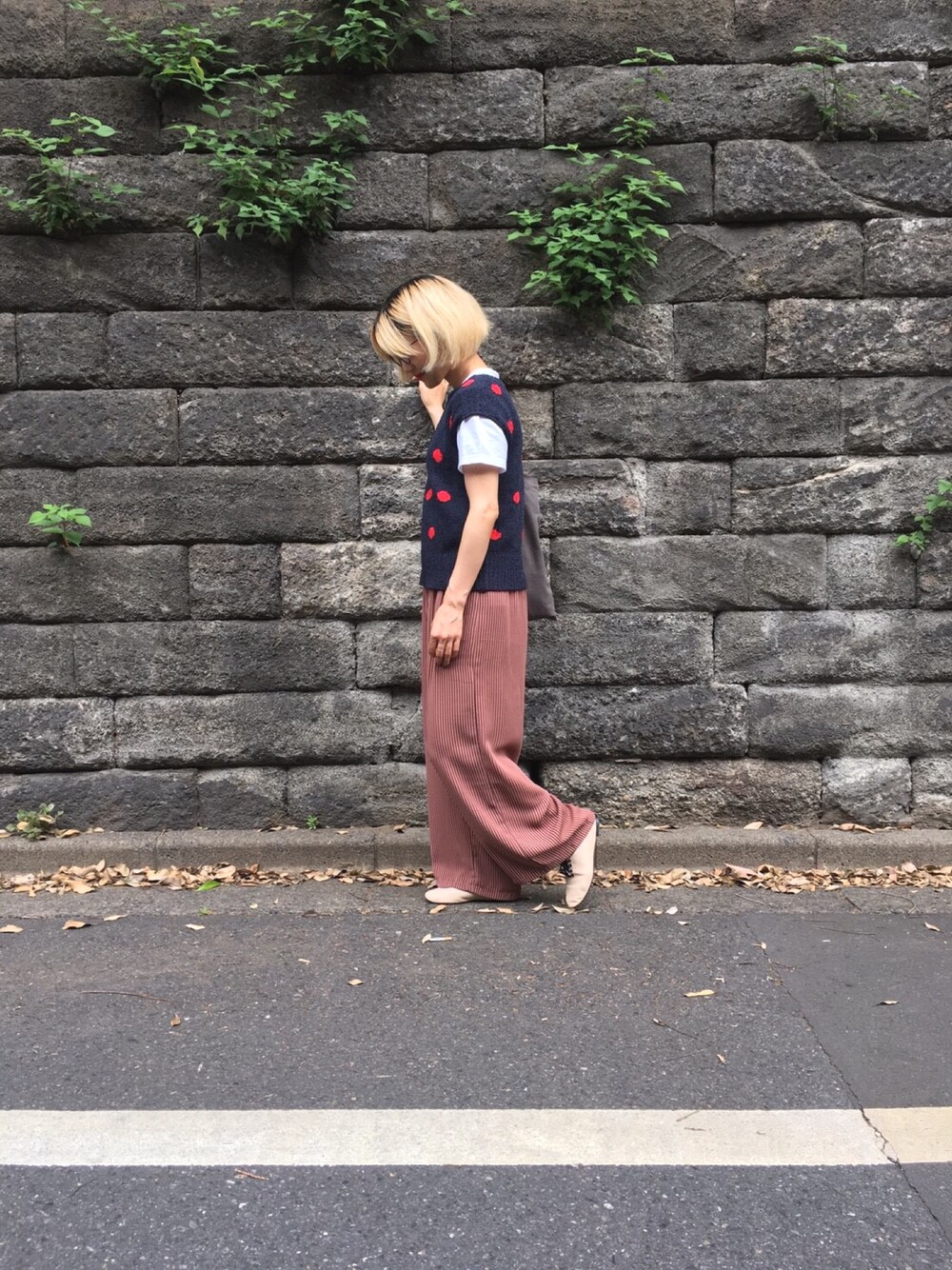 古着の水玉ニットベストでキメッ。Opéra de Parisのシューズは歩きやすい〜。