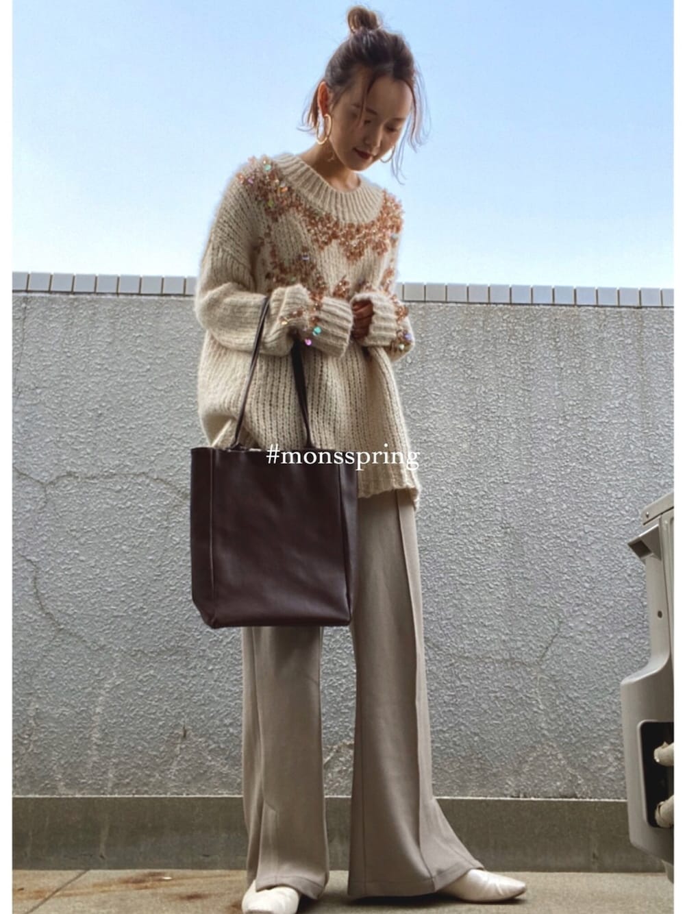 自粛中なのでベランダでファッションショー😂👏(笑) 2年前にZARAで一目惚れしたニットと アースのお気に入りパンツ♡ . お家とスーパー行くくらいしかなくても ゆるーくお洒落楽しみたい👌🏻