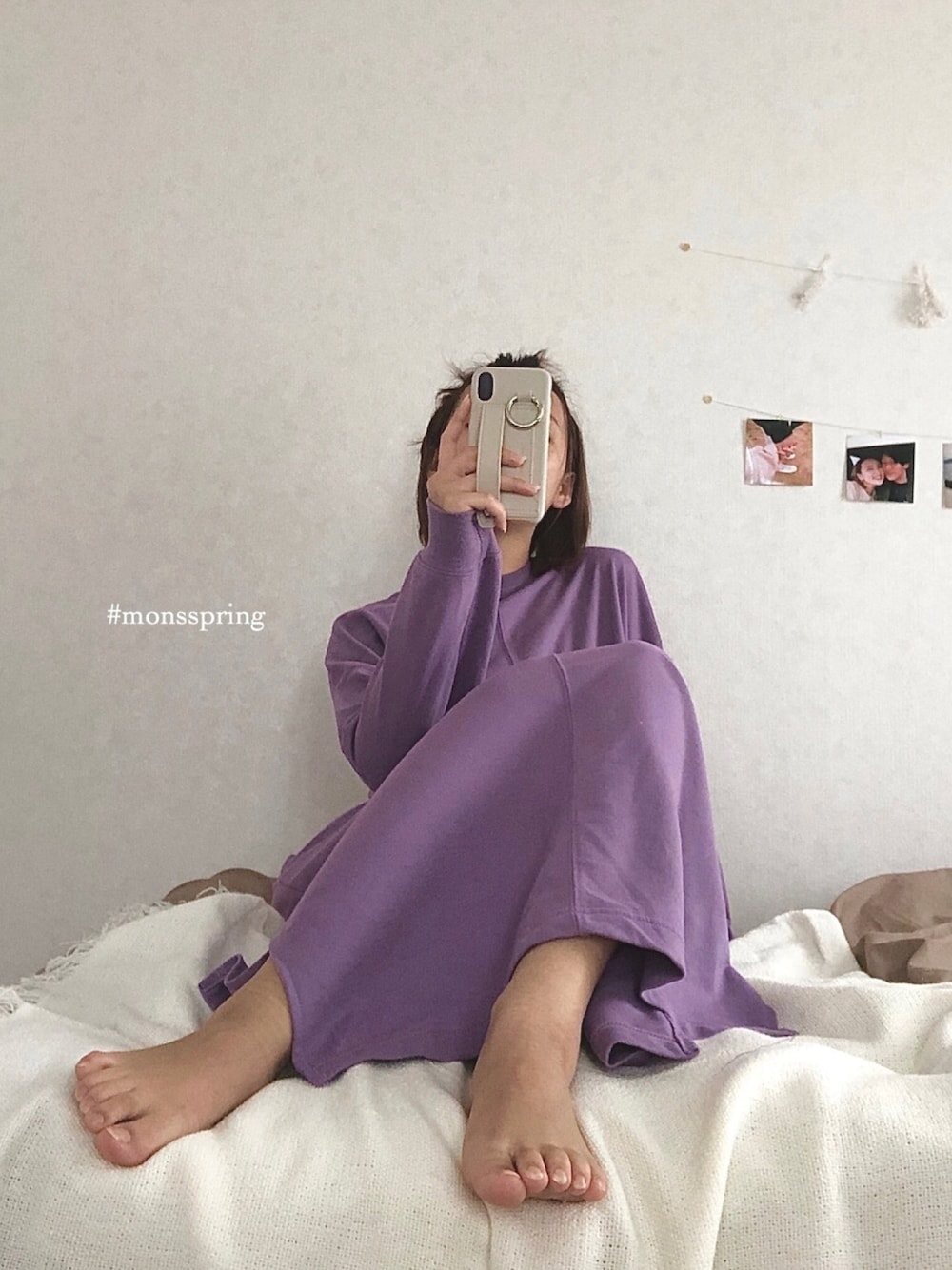 リアルパジャマ👾 お家に長くいるとワンピースが いちばん楽で通気性も良くてすき💡