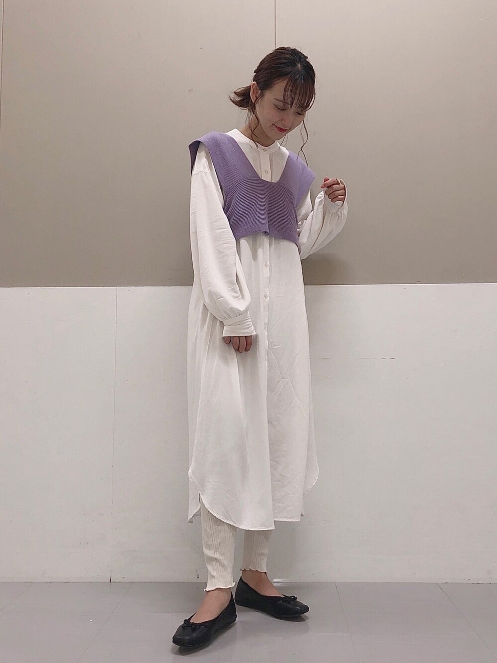 珍しく色物着てみました☺︎ こちらのビスチェ思ってたよりも めーっっちゃ可愛いです!! 大人っぽくて落ち着いたパープルなので たくさん着まわせそう🥺💜