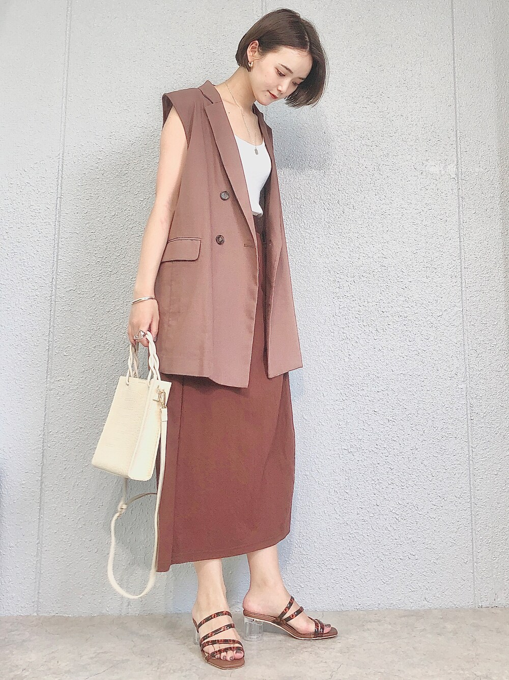 mayu(minia)のショルダーバッグ「ツイストハンドルのスクエアミニショルダー ◆」を使ったコーディネート
