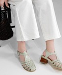 Gurkha sandals🌿 ボーイッシュな印象になりがちなグルカサンダルが多いけど、 程よい高さのヒールできれいな足元に .. 👡 しかも淡いミントカラーで気分があがる~♡ マーメイドスカートとの相性が◎