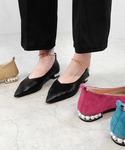 Black code⛓🖤 新作のパールヒールパンプスを主役にしたコーデ あえての靴下合わせでカジュアル感をプラス◎ 服も靴もブラックだからバッグはベージュで軽めに✌