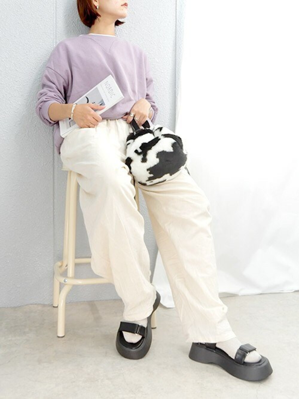 ゆるゆる楽ちんコーデ過ぎてポーズまでゆるゆるになっちゃったコーデ😂(笑) 朝晩の気温が下がってきたから 靴下×サンダル合わせに心惹かれる~ ゆるいコーデも映えるのでおすすめです✌