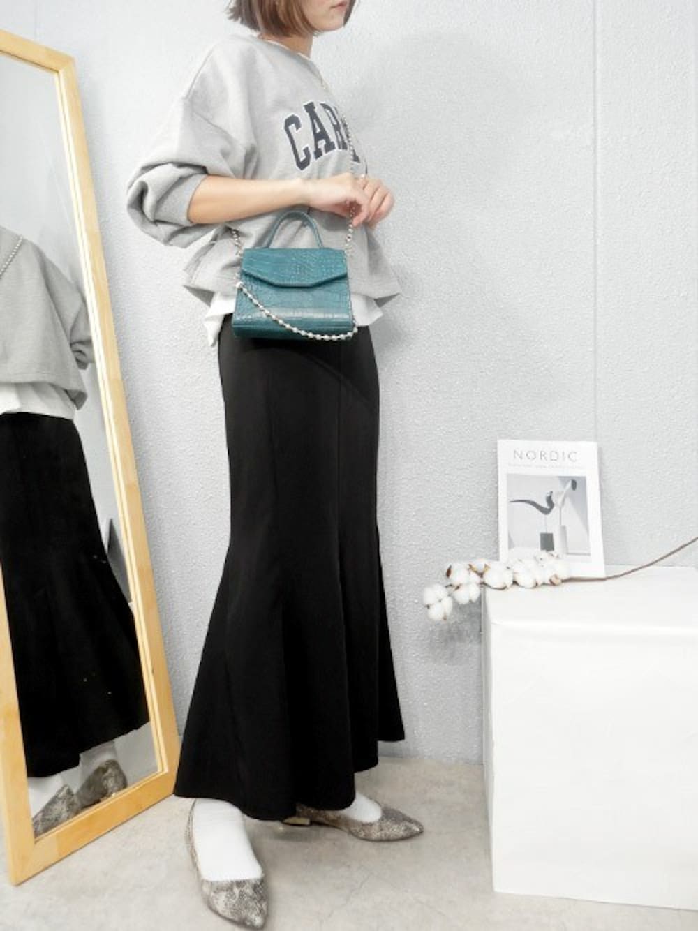 パイソン柄をカジュアルに🐍🧺 ぺたんこなのに足元のスタイルアップができる 優秀パンプス✌ 甲がアシメカット+つま先がポインテッドトゥでスッキリ見え抜群◎ ボリュームのあるロングスカートにも 合わせやすいのでおすすめ🤍 ダークグリーンのミニフラップバッグも 意外とコーデに溶け込む😳✨
