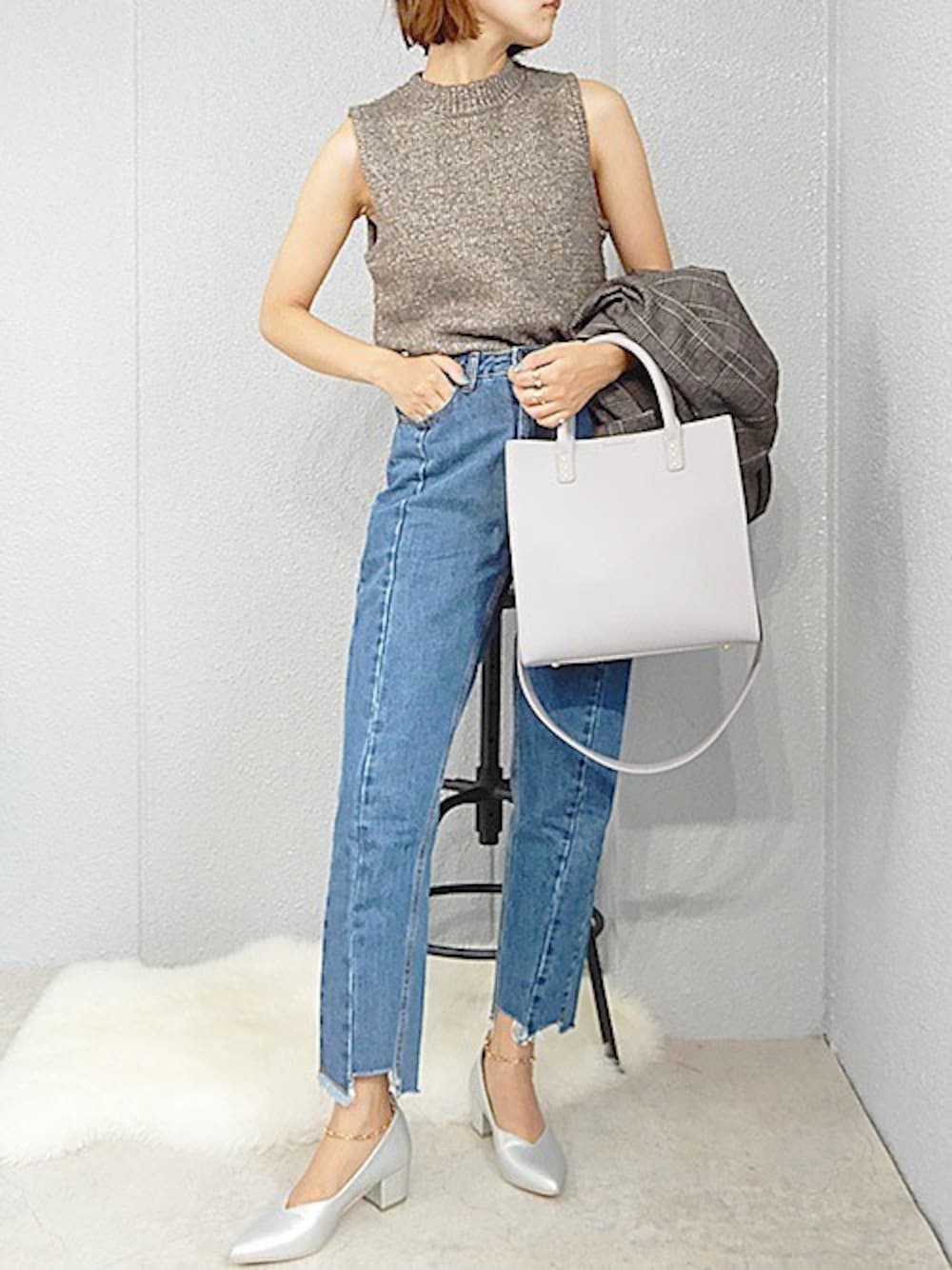 きれいめコーデ♡ オフィスカジュアルを普段する事ないから新鮮😌 シルバーのパンプスはパールアンクレットと チェーンアンクレットがついてる4WAY使用👀✨ 太めのヒールだから安定感もばっちり◎ 個人的にスクエアのバッグがしっかり入るから お仕事用におすすめ✌︎