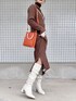 暖色カラーできれいめコーデ🧸🍊👢 くしゅくしゅブーツめた可愛い。