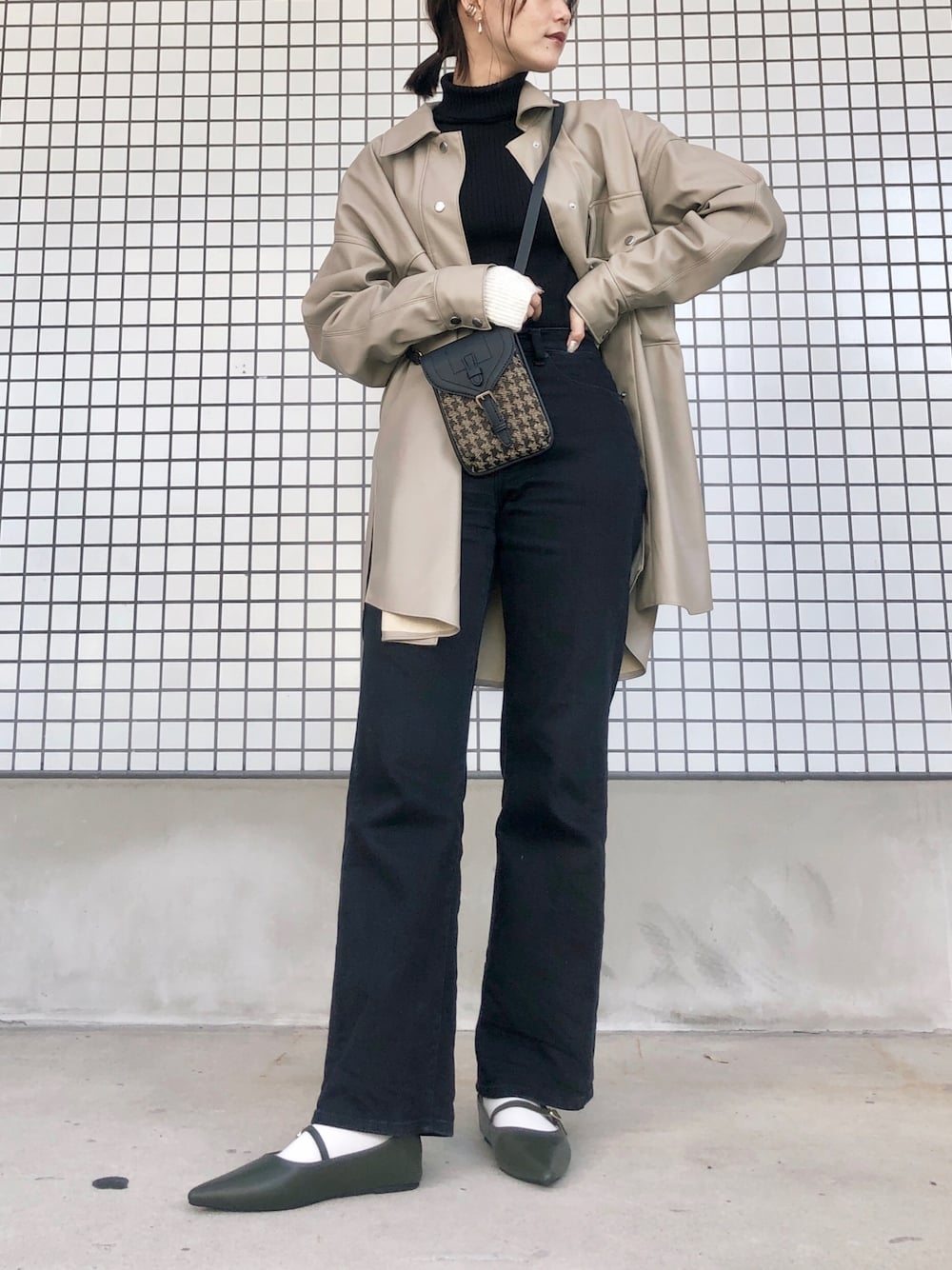 🎱💚 楽ちんコーデ。 やっぱりブラック、ベージュが落ち着くなあ。 でもカラーも取り入れたくなるので 足元にさりげなくカーキをON 深めなカーキが可愛い~!! かかとも踏めるバブーシュデザインでめちゃ楽🙀✨ ポインテッドゥって指痛くなりがちやけど コレは生地が柔らかいので締め付けないのが最高。よき🙆