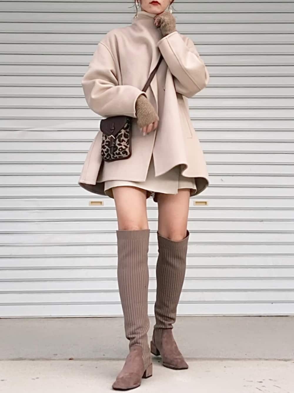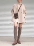 One Tone Code🧺🤍 ご覧いただきありがとうございます👀✨ お気に入りのコーデ◎ Aラインコートにピッタリのニーハイブーツ。 温かいし足をスッキリ見せてくれるし くしゅくしゅ履いても可愛い!! 色味も絶妙なMochaがこれまた..🙈🤍 ワントーンコーデに使いやすい。 バッグは小さめでいい女風に✌(笑)