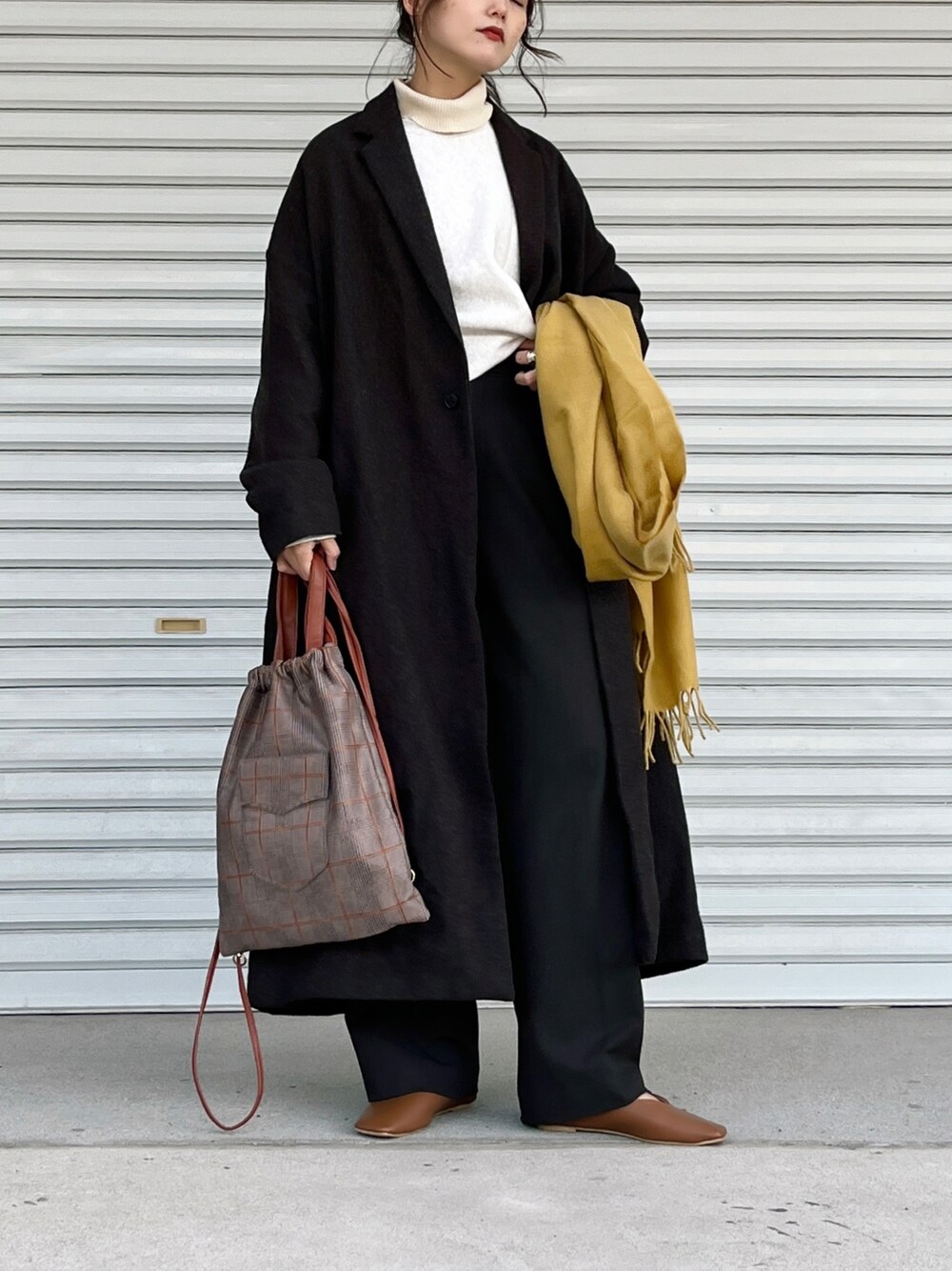 Brown code🧸🧣 3年前くらいに買ったロングコート 毛玉だらけなってきたけどお気に入りで 今年もスタメン✌︎ マスタードのストールと チェックのナップサックが 程よくアクセントになってるのが コーデのお気に入りポイント。 靴はめっっっっちゃ楽ちんなぺたんこパンプス❤︎ 踵も踏めるくらい柔らかい生地で 履き心地が最高〜!!