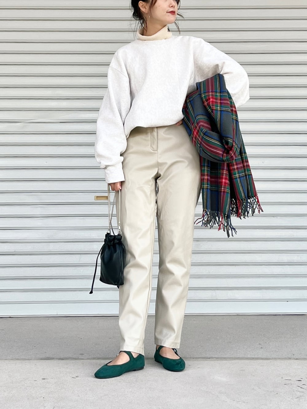stole code🧣 高校生以降、柄物のストールに 惹かれることがなく。 断然、無地派だったけど グレーベースに赤緑のチェックが可愛くて..👏❤︎ 大人っぽい配色で私服でも合わせやすい◎ 靴は濃いめのグリーンやけど、 ストールとマッチして派手にならなくて 程よくお遊び感出るのでおすすめです✌︎