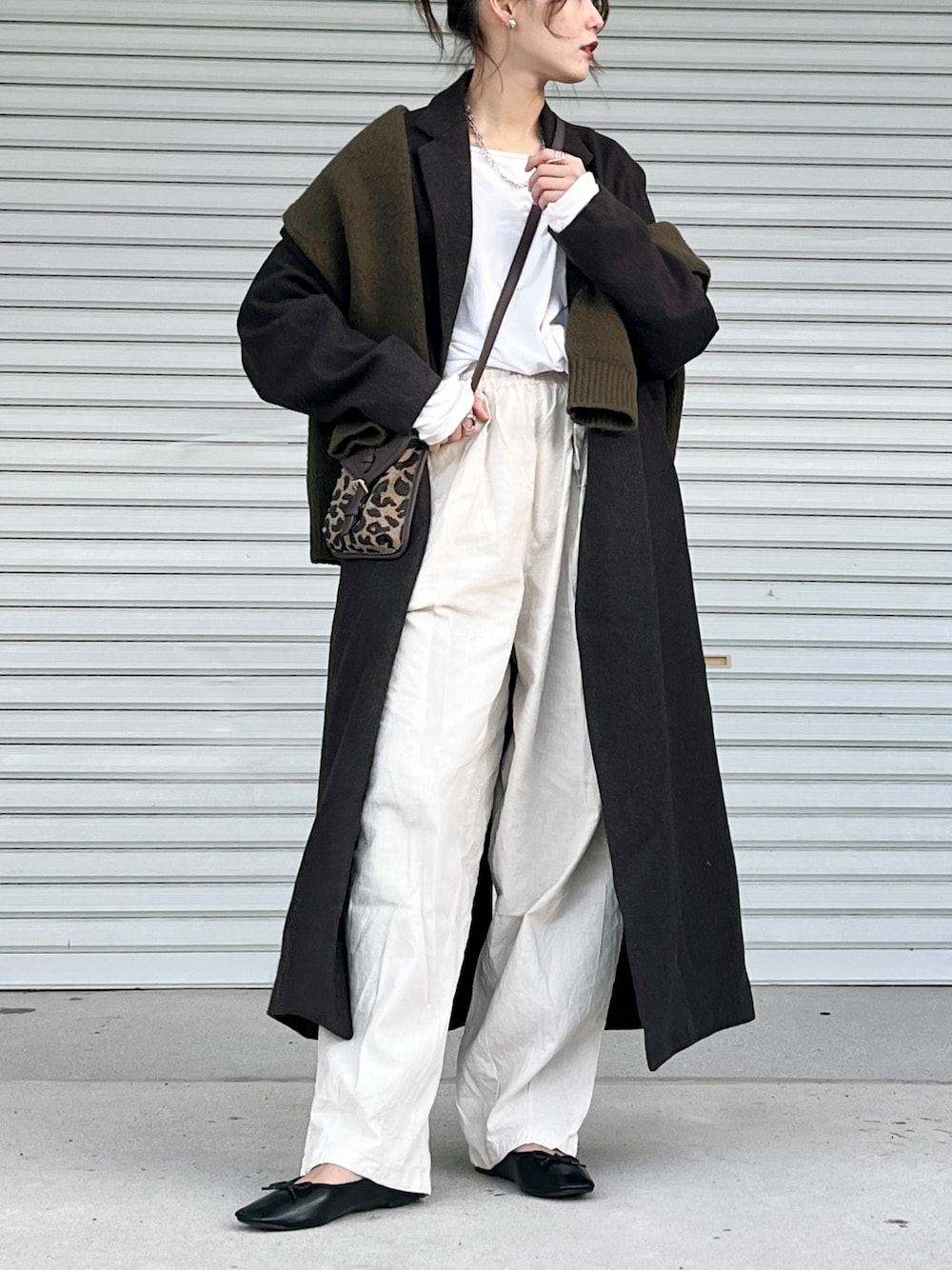 ご覧いただきありがとうございます:) 最近流行りの肩掛けコーデ◎ レオパードバッグをアクセントに Instagram▶︎@______mayu.f