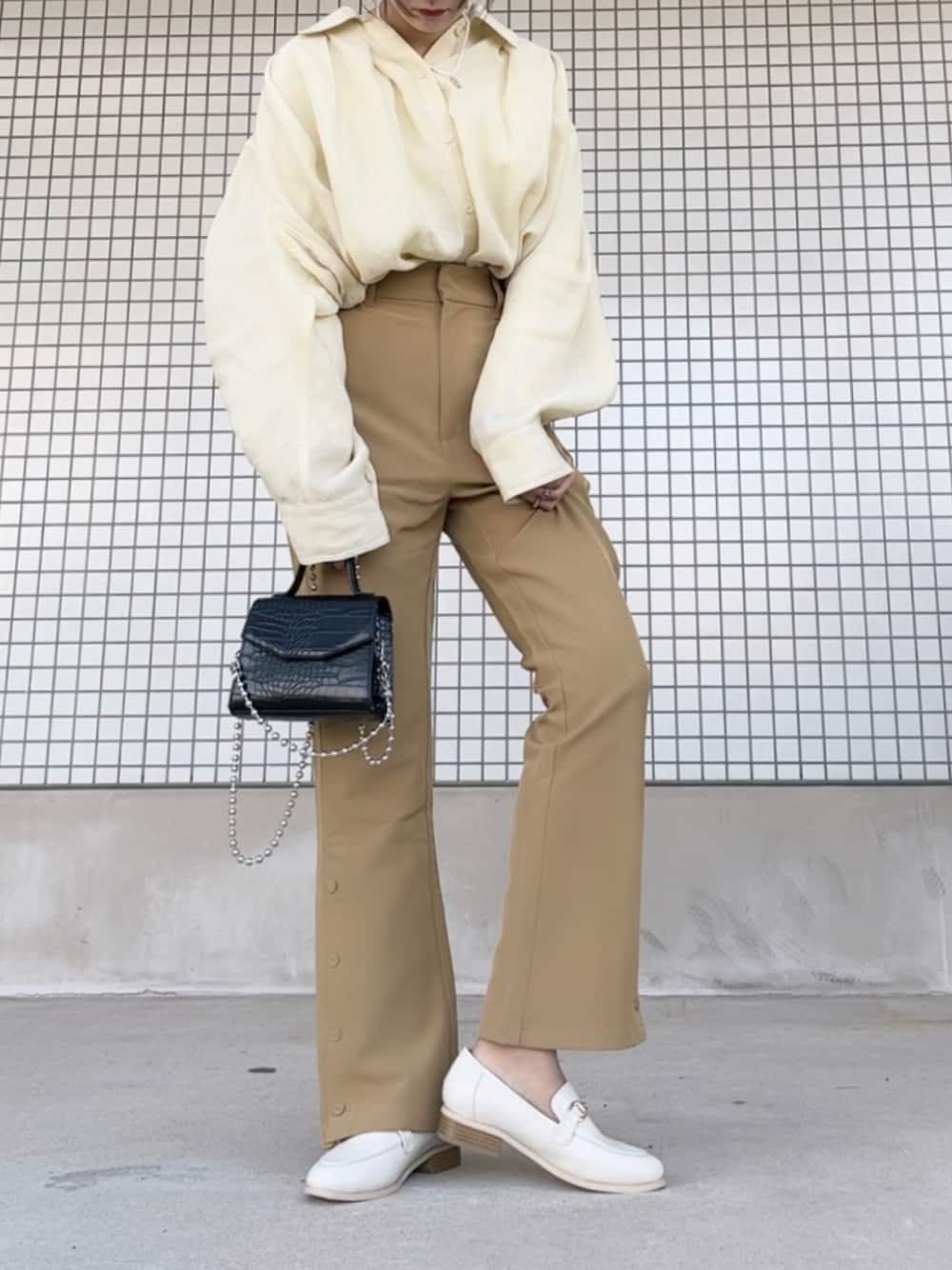 mayuのショルダーバッグ「ボールチェーンのフラップミニショルダー ◆」を使ったコーディネート