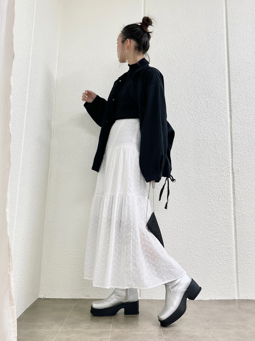 ご覧いただきありがとうございます:) マットな質感のシルバーブーツを かわいめに合わせてみた✌ Instagram▷@______mayu.f