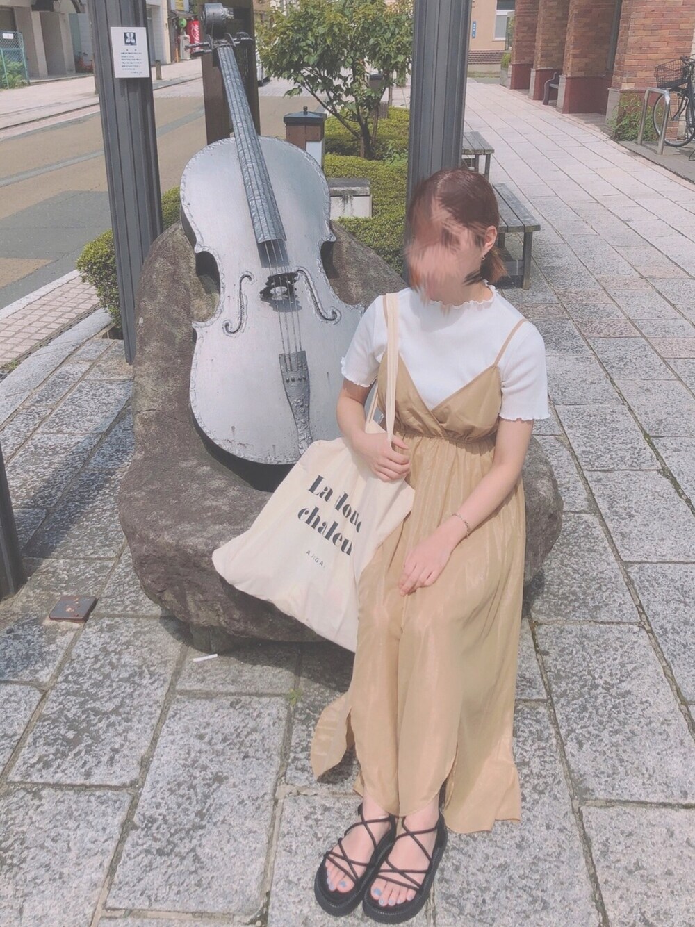 今日のコーデはキャミワンピ❁︎ 胸のところが締まってて可愛い!! トートバッグは近藤千尋ちゃんのshop 、AJUGA.のエコバッグ! 大きくて使いやすい(´˘`*)