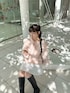 ピンク系のニット/セーターを着用したレディースの秋コーディネートの4枚目の写真