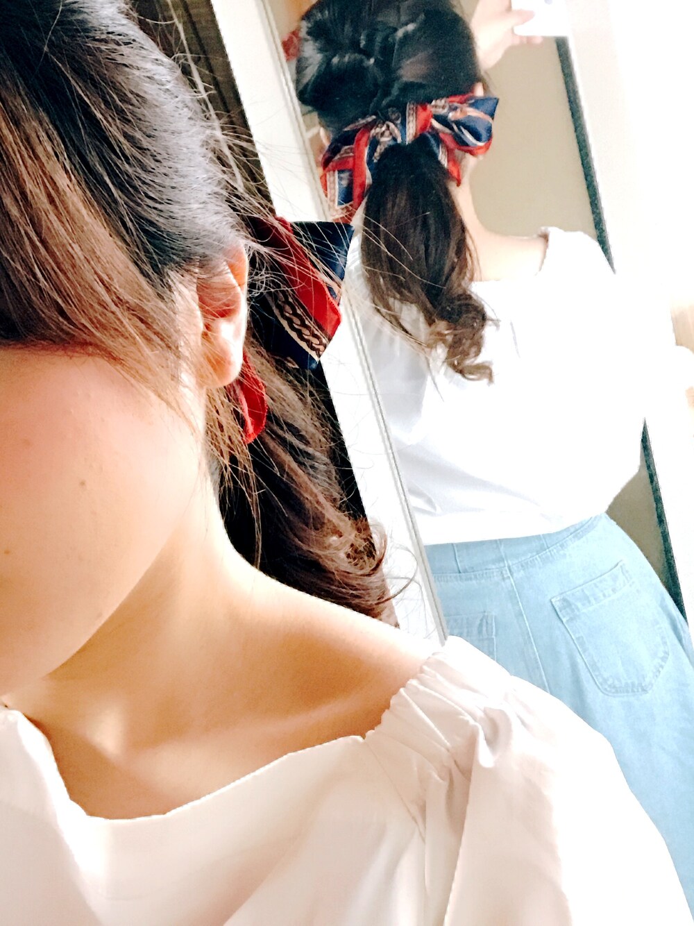 この前のコーデ時のヘアスタイル! スカーフをリボンに🎀