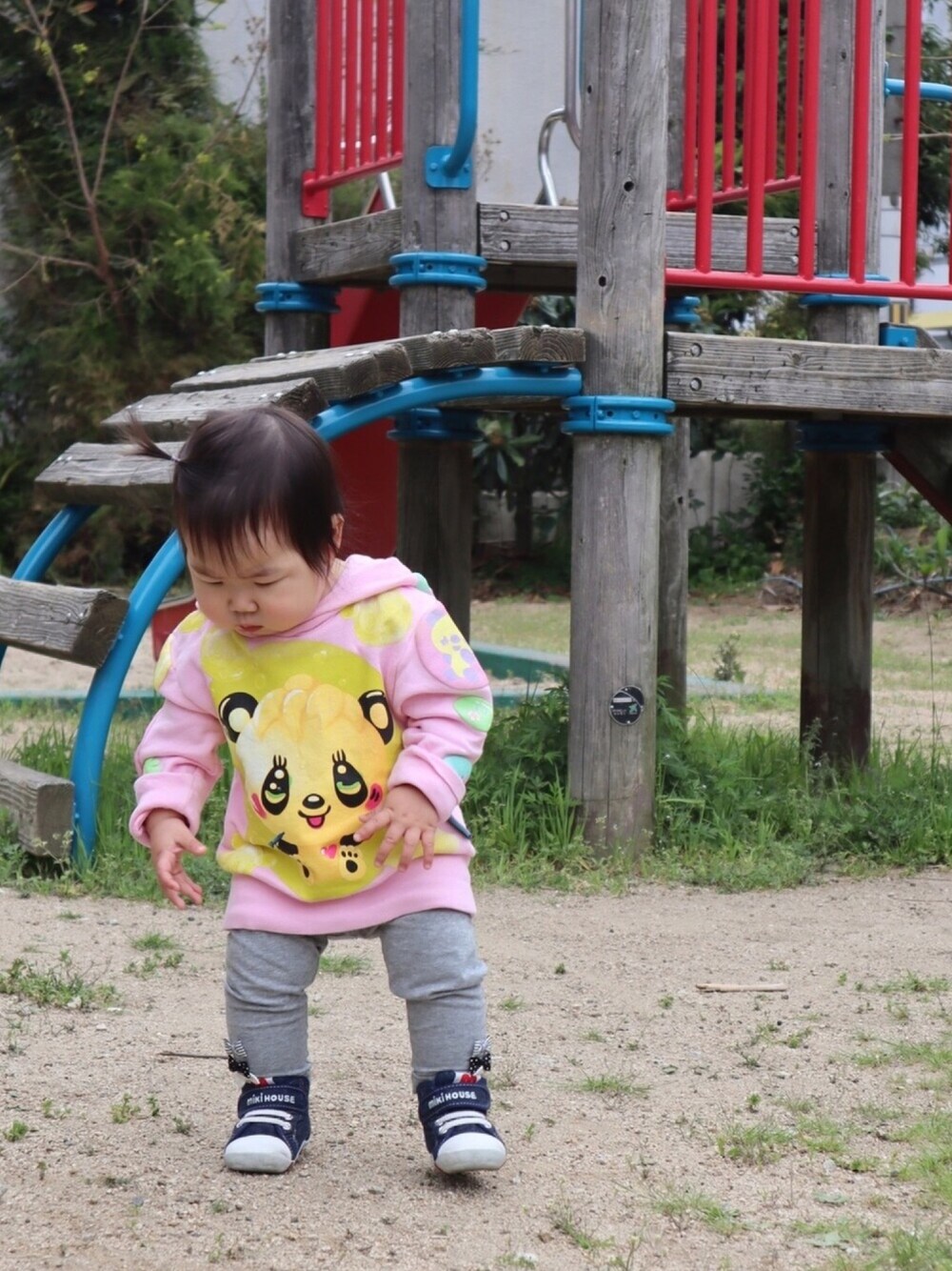 今日は雨が降る前に公園へ( ˙꒳˙ ) 階段も登れるようになって お外が楽しくて仕方ないみたい♡ 90のパーカーをワンピ風に(≧◡≦)? パンダさんとカラーが可愛い♡