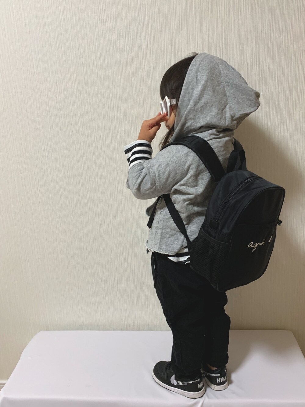 ♡MiKo♡のパーカー「切りっぱなしミニ裏毛7分袖パーカー」を使ったコーディネート