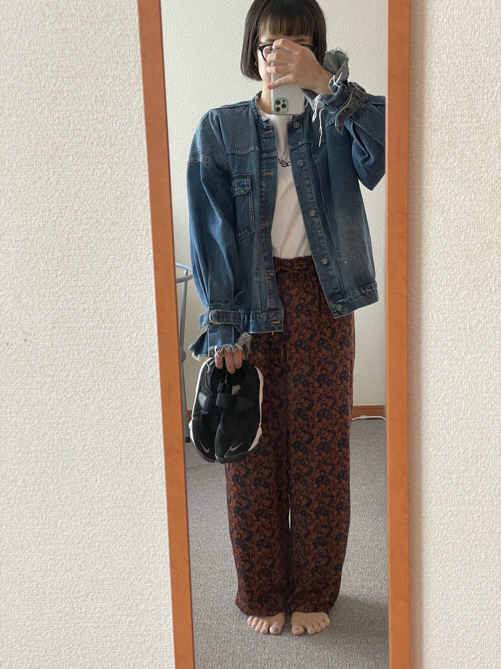 デニムジャケットと柄パンツ🌼