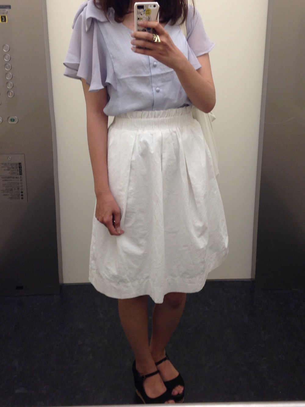アイスグレーみたいな色のトップスがお気に入り☺︎ 膝丈のスカートにハマった。