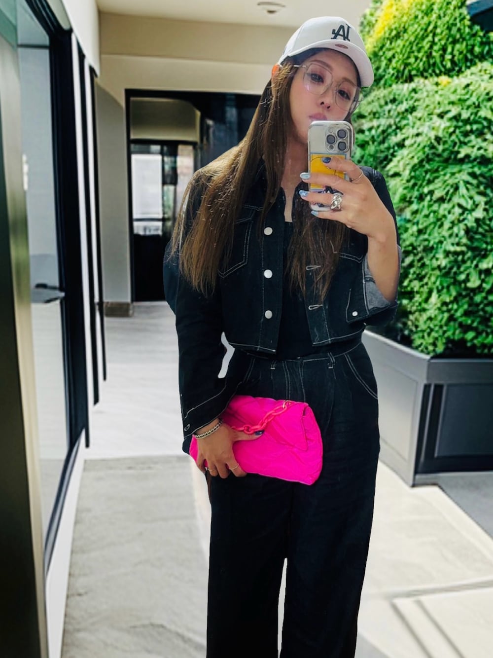 メンズっぽくなり過ぎないようにピンクのバッグで可愛いをプラスしました🩷