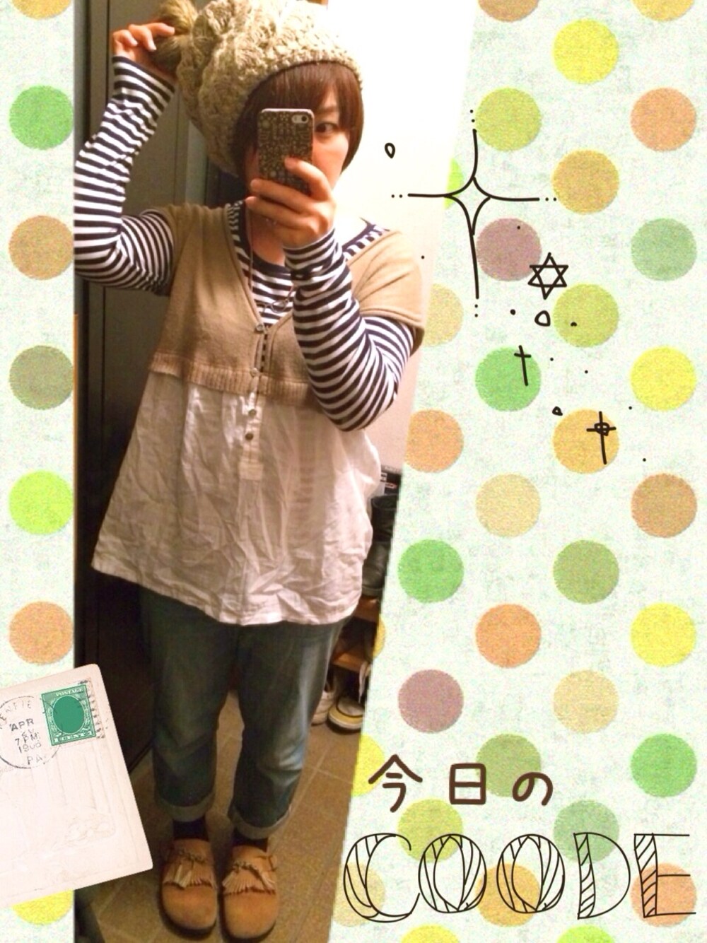 ボーダーT:UNIQLO 靴下:tutuanne ゆるゆる楽チンコーデ( ´ ▽ ` )ノ 寒くなりそろそろ 長袖を本格的に 出さねば!