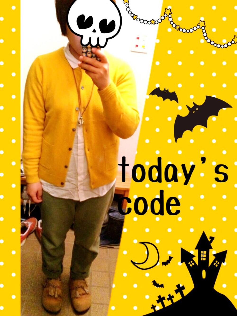 シャツ:UNIQLO 黄色が着たくて カーディガン買いました( ´ ▽ ` )ノ ポケットついてて かなり可愛いです♫ あったかい〜〜 シャツと着る時は 第2までボタン留めます! 秋なので どんぐりネックレスと!