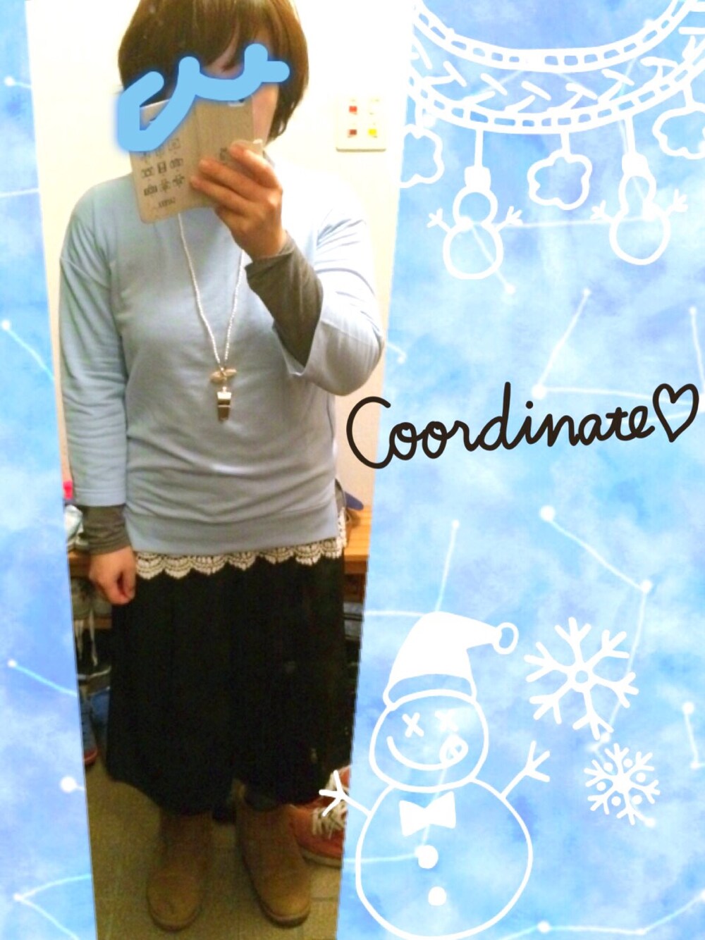 レーストップス:and_it レギンス、靴下:UNIQLO 爽やかライトブルー( ´ ▽ ` )ノ ちょいハイネックです。 レーストップスに ガウチョパンツ合わせて...♪*゚