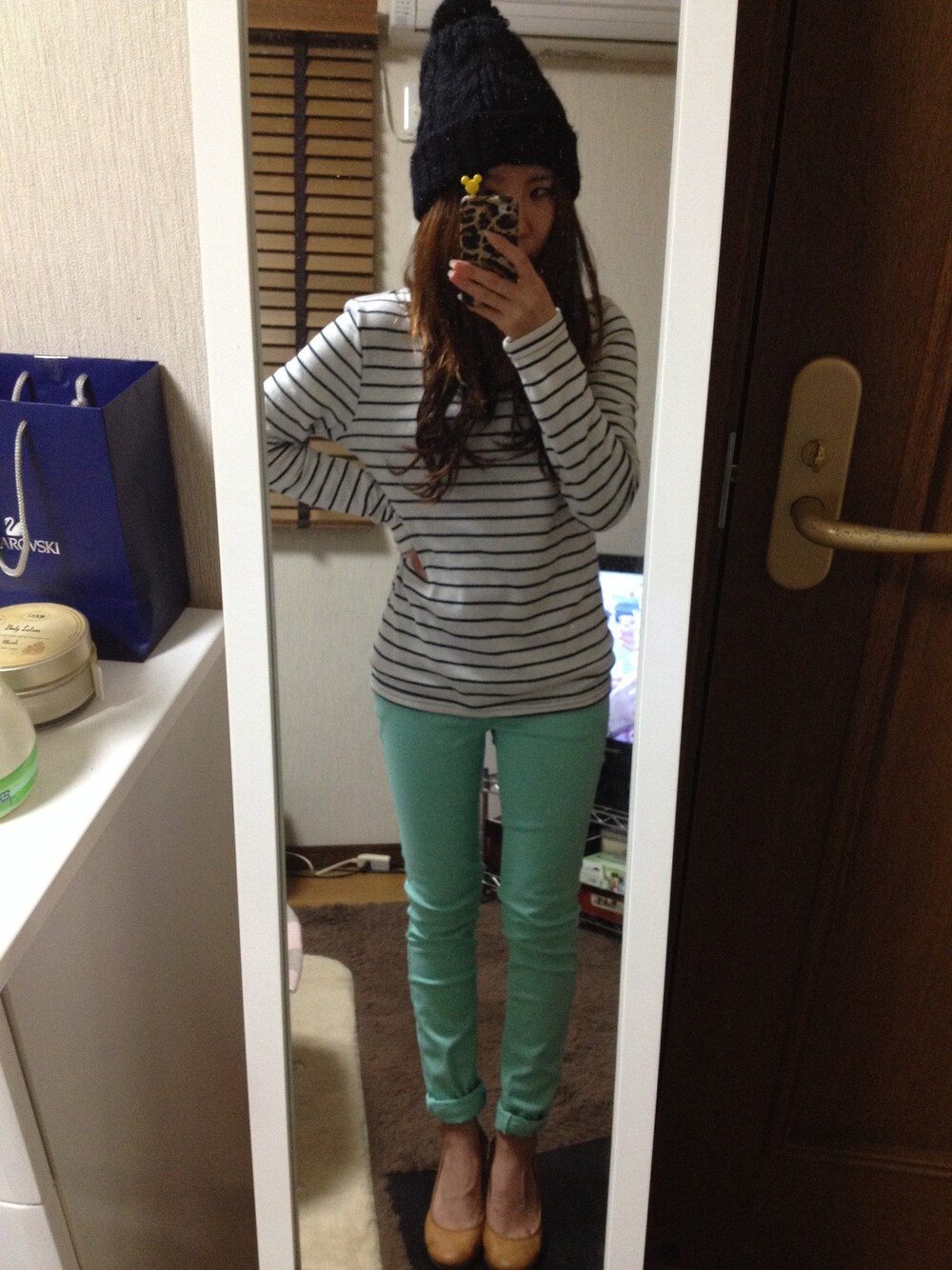 カラーパンツ履いてみた☆ 定番コーデな感じで普通だぁ(;д;) オシャレなりたい💦