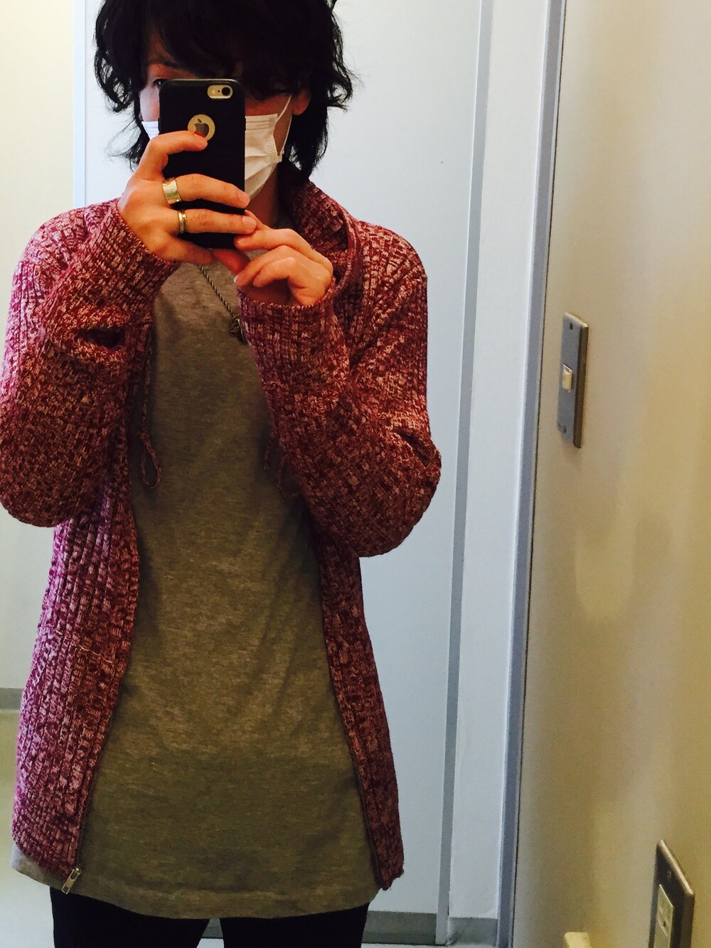 ロング丈のカットソーなんですが、パーカーがのびのびですね。。 そして手がナヨってます。。
