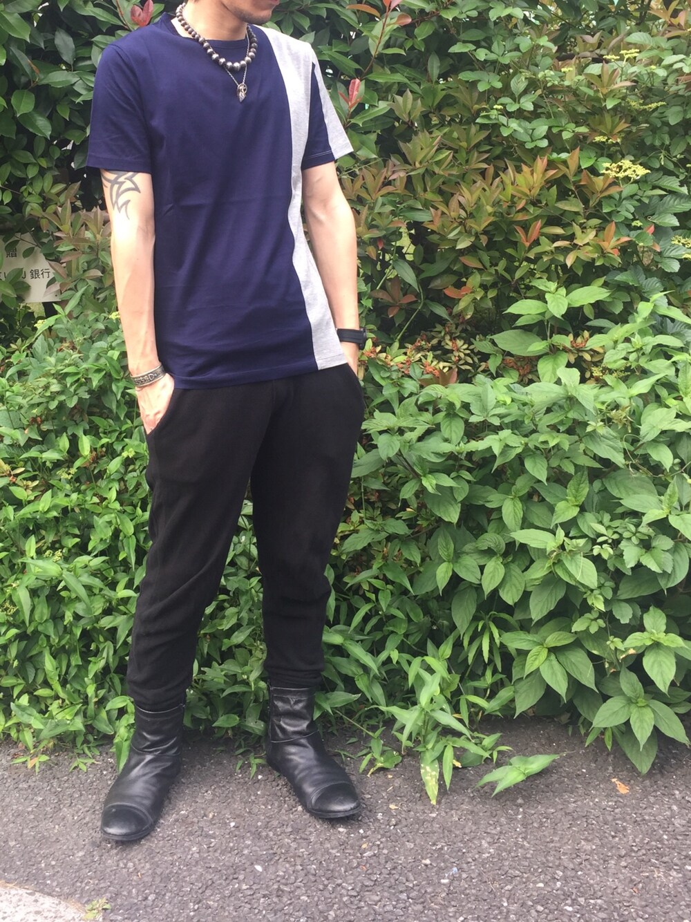 25skeilのTシャツ/カットソー「BICOLOR ASYMMETRY CUT / バイカラーアシンメトリーカットTシャツ」を使ったコーディネート