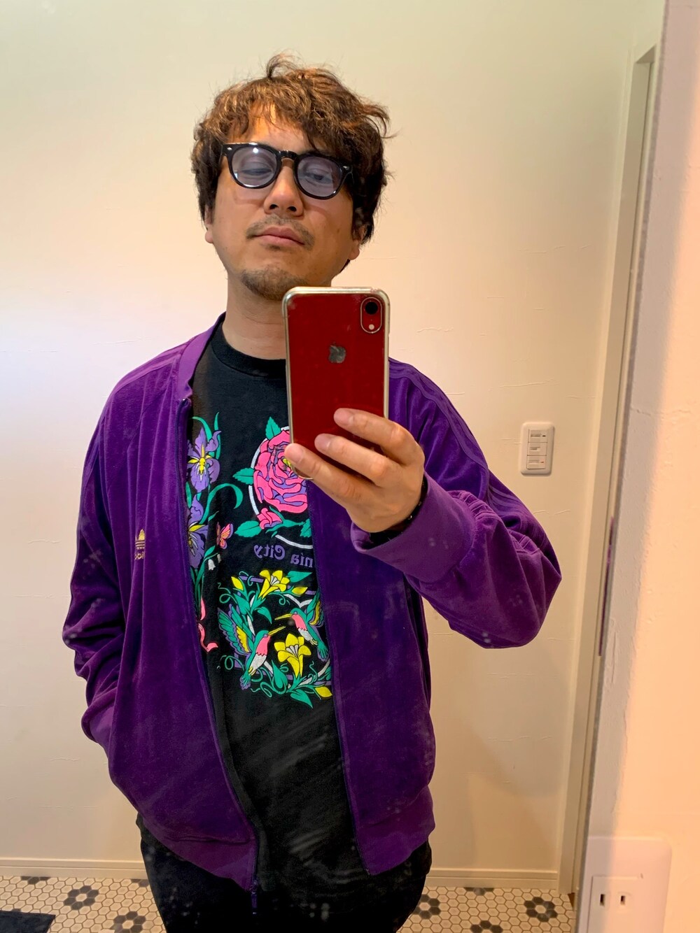 #おうちファッション #古着#古着ミックス 新しく買った古着の ボタニカル柄のTシャツ これはいい! お気に入り追加だな! パープルアディダスは 胸のマークが金色なんです! これも気に入り! あー早く古着屋めぐりに行きたい! でもステイホーム! 頑張りましょう