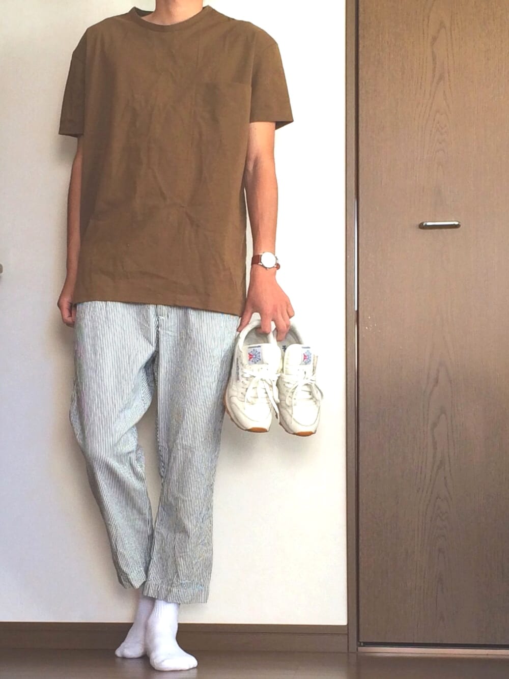 このパンツホンマに最強。。😌 オープンカラーシャツ買うかボーダーT買うか悩み中です、、!! いいね、save、フォローよかったらお願いします〜!(^ ^)