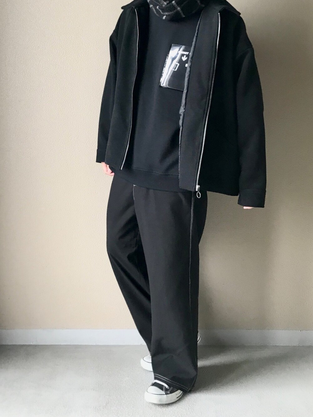 おはようございます☀ いつもご覧いただきありがとうございます! 今日は変わったスウェットを使った 冬のオールブラックコーデです● ポケットが透明な斬新なスウェットに オーバージャケットをあわせてみました! インスタを開設するか迷ってます、、 アドバイスとかあったらお願いします🙏🙏 またよかったらいいね、セーブコメント等お願いします!!