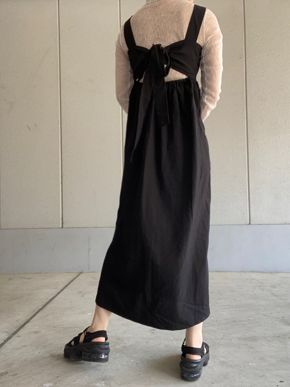 こんにちは🌞 今日も見ていただきありがとうございます😊 いいね、お気に入り、フォローお待ちしてます❕ バックリボンのエプロンワンピ🎀🖤 6月だというのに暑くて暑くて参ってます😢