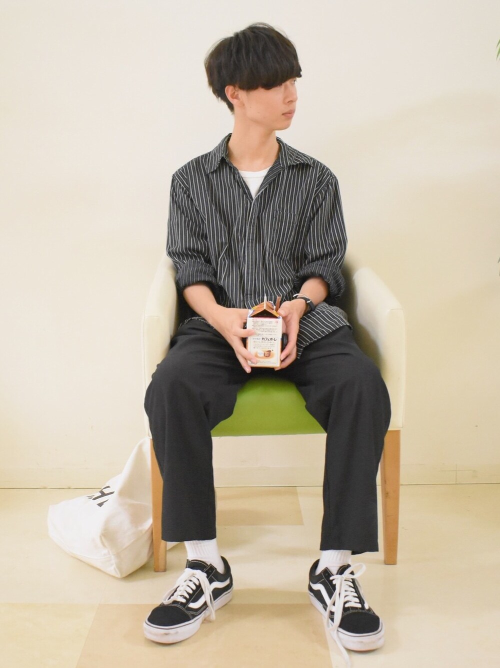 . . . . . . ストライプののシャツかわいい🐒 モノトーンコーデって落ち着くよね🙊✨