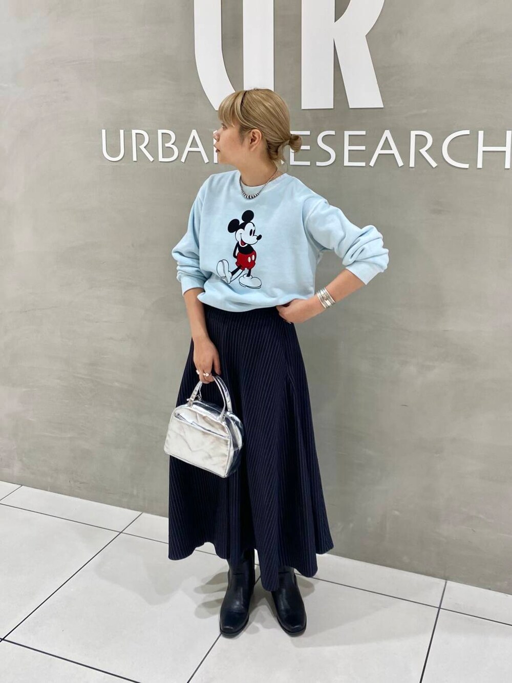 今回はリアルバイしたミッキースウェットを主役にしたコーデです🐭🩵 カジュアルなスウェットにレディなスカートとロングブーツを合わせて大人っぽくを意識しました! スウェットは裏起毛じゃないので、 涼しくなりきってない今の時期から大活躍です! とってもおすすめ🤭 ぜひ参考になれば幸いです!