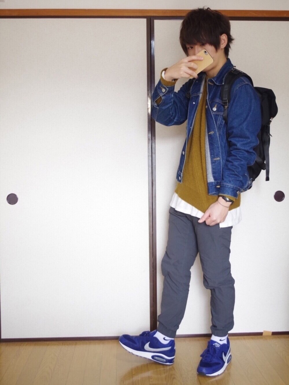 今回も若干時を超えたGUコーデ☺️ デニムジャケットは古着ですけどGUにあるんでね🤔 ロングタンクトップ出さんのかなぁGU デニムを着る時は靴をブルーのエアマックスにするのがお気に入りです☺️ スポーティカジュアルに黄色ニットの相性\\\\٩( 'ω' )و ////