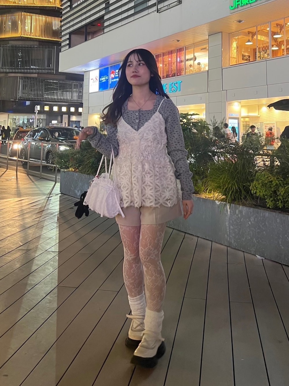 春は甘め気分なので、レース素材沢山集めちゃう🥺🫶🏻 トップスグレーにして甘さ抑えてます🩶