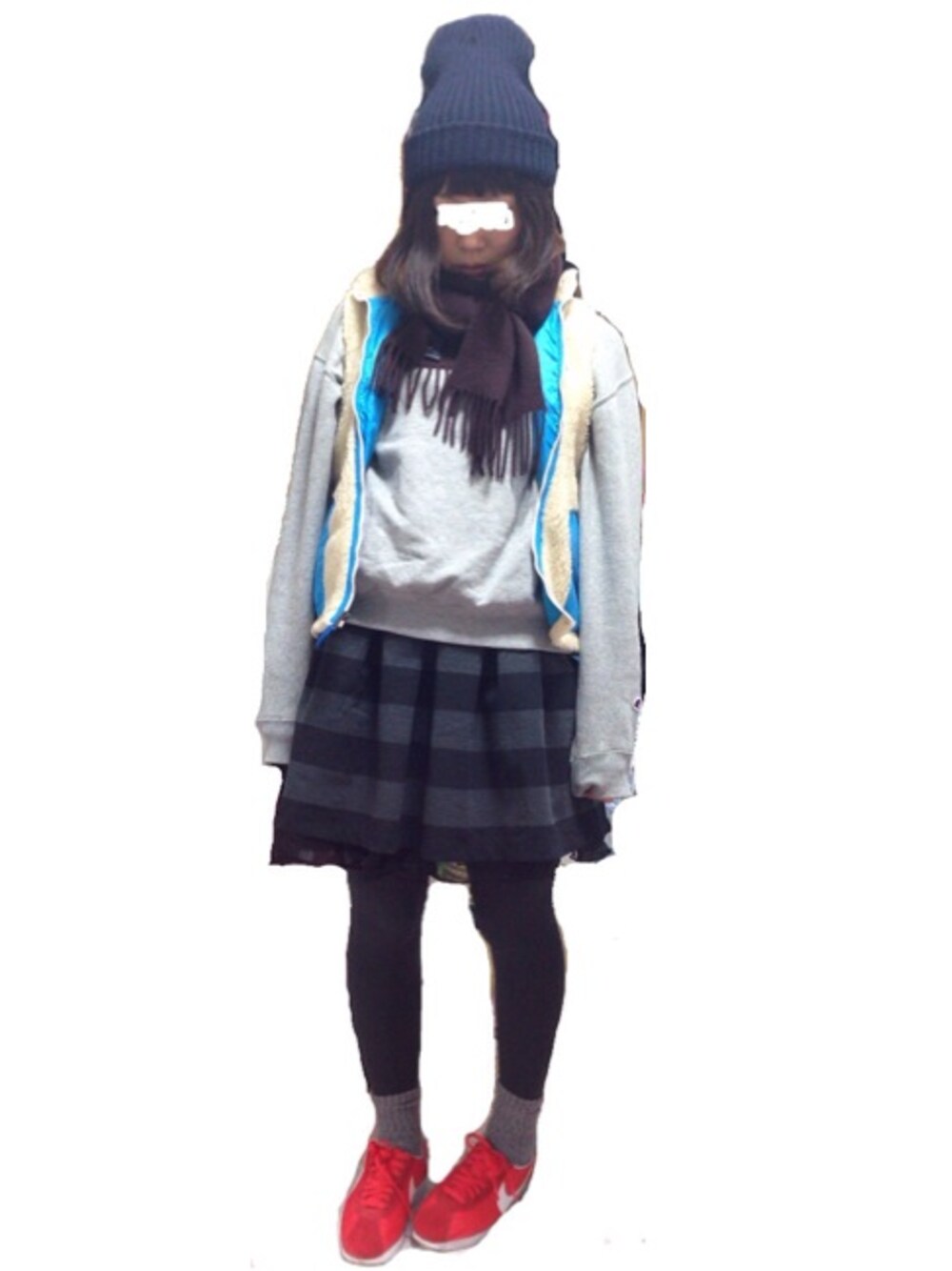 スウェット 古着 ベスト patagonia ワンピース JEANASIS マフラー Vivienne Westwood シューズ NIKE この間少し暖かかった日。でもまだ寒かった。