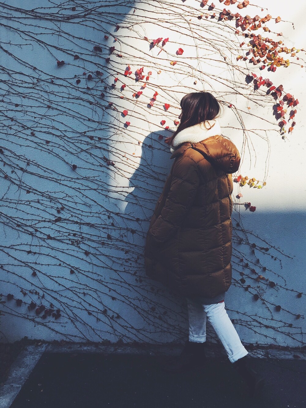 ブラウン系のダウンジャケット/コートを着用したレディースの冬コーディネートの1枚目の写真