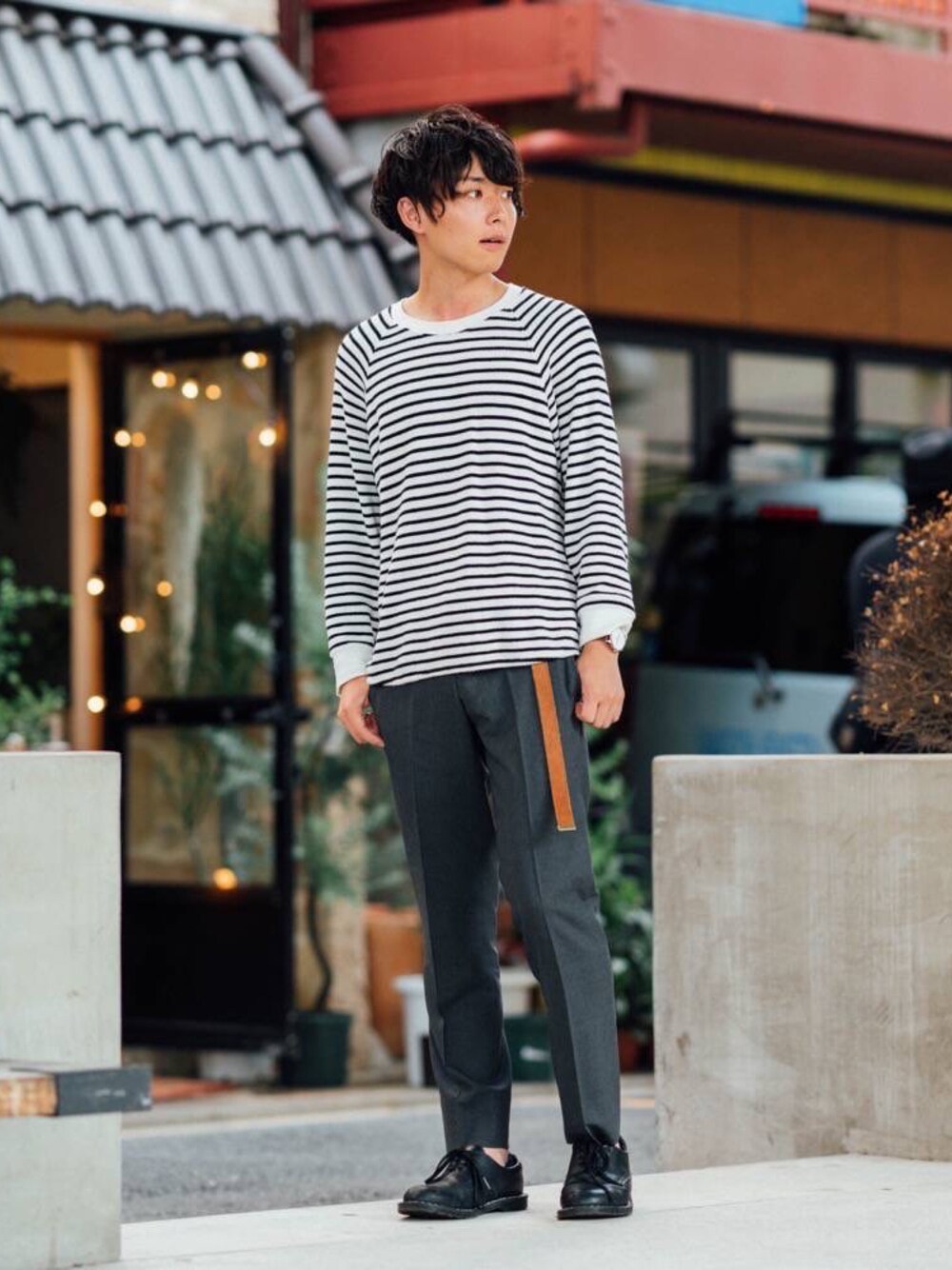 堀口英剛@monographのニット/セーター「◇7G W/NYボーダークルーネックニット」を使ったコーディネート