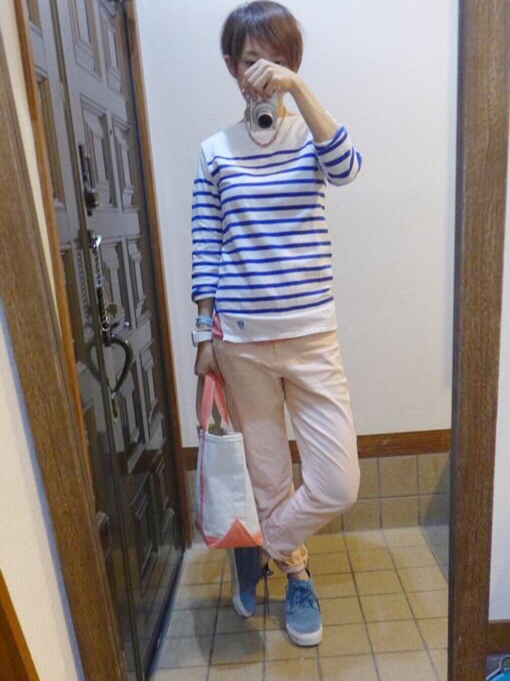 もこのトートバッグ「サーモンピンクトート」を使ったコーディネート