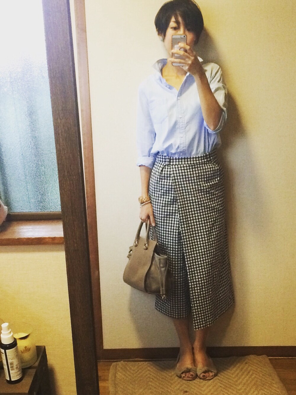 おはようございます。シャツはユニクロ、パンツZARA、バッグpopcorn、サンダルgaimo、アクセサリーSENBA。