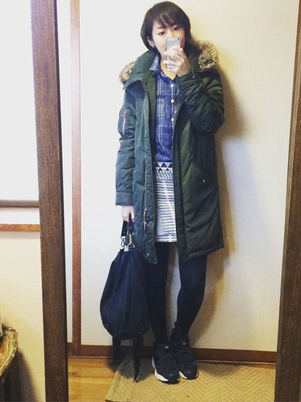 今日は寝坊しました〜コートFilippaK、シャツUNIQLOメンズ、スカートFrenchTrotters、バッグZARA、スニーカーREEBOK、アクセサリーSENBA。 コーディネート詳細はブログをご覧ください