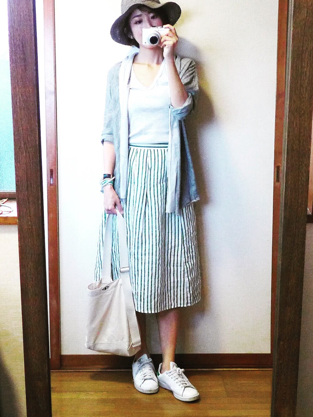 もこのハット「MUJIの麦わら」を使ったコーディネート