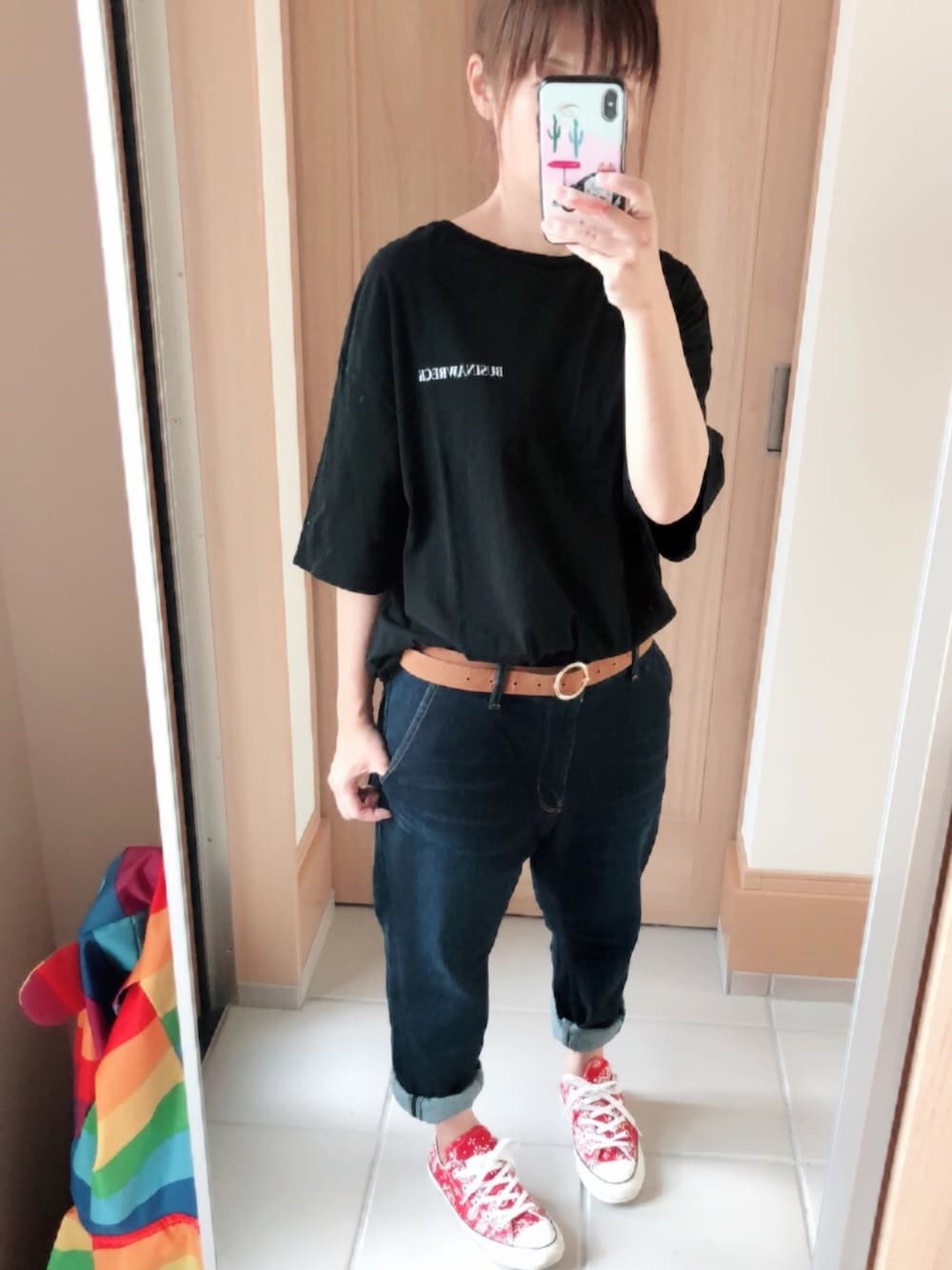 もんぴ۶✧˖°のスニーカー「CONVERSE コンバース オール スター 100 バンダナ オックス / ALL STAR 100 BANDANA OX (レッド) (17SP) 32862082」を使ったコーディネート