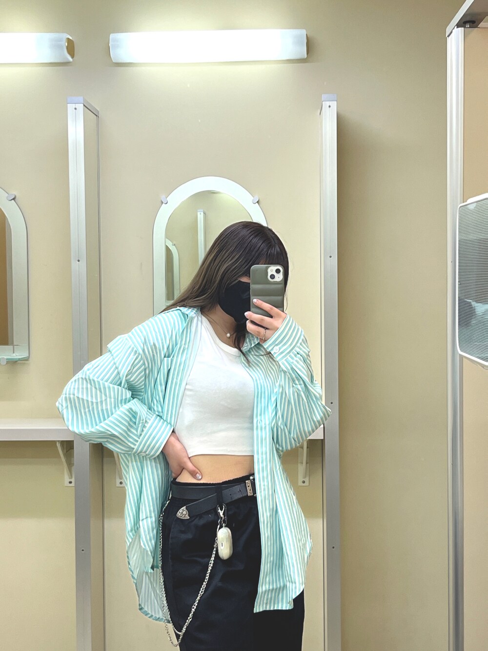 こんにちは😊✨ 今日は少し肌寒いのでストライプのシャツにしてみました✋🦖📗 このシャツは今日初めて着るので着る時楽しみでした😂 今年の夏は日本もエルニーニョ現象が怒るって、、!?🥶