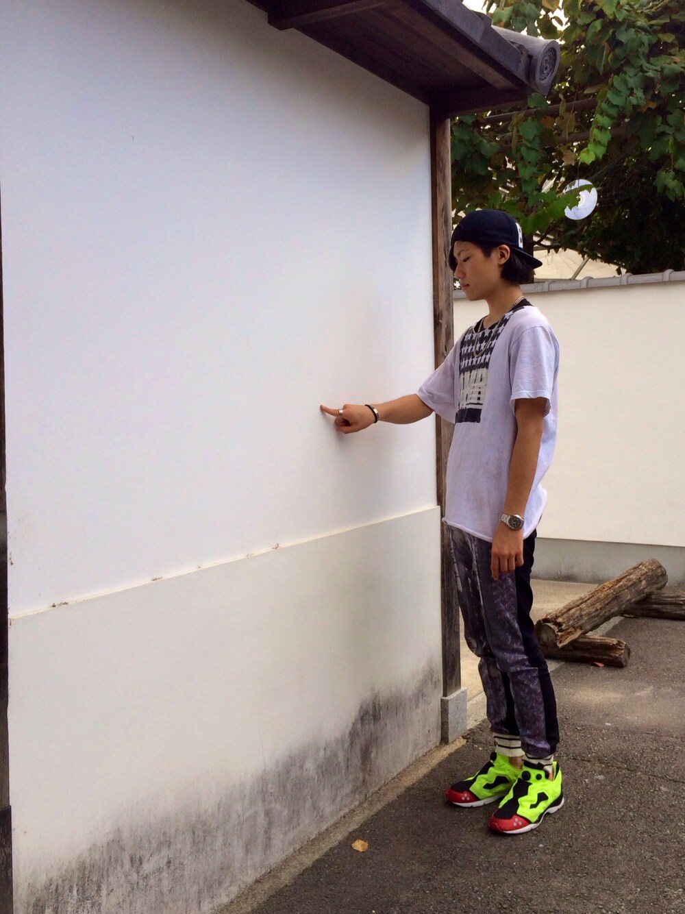 壁に出来たシミをつついてる瞬間です。至福のひとときです。